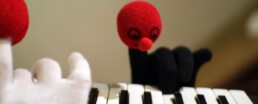 ROTBÄLLCHEN (ab 2 Jahren, 35 Minuten). Ein Stück über Klein und Groß, über die ersten Schritte, die ersten Begegnungen mit kleinen und großen Freunden und die ersten Überraschungen. Ein Stück über Werden, Vergehen, Wandel und Neubeginn. Die Geschichte über das kleine Rotbällchen lebt vom ständigen Wandel. Sie entführt uns in eine phantasievolle Welt, in der eins ins andere übergeht, seine Gestalt verändert und uns darüber staunen lässt. Ein kleiner roter Ball bekommt ein Gesicht und blickt uns freundlich an – Rotbällchen. Eine Hand wird zu Rotbällchens kleinem Körper, mit dessen Beinchen es schwarz-weißen Zehen Töne entlockt. Ein riesiger roter Ballon mit dem es eben noch durch den Raum schwebte, verliert seine Luft und zieht als Fisch an uns vorüber. Er hinterlässt uns kleine rote Bällchen ...